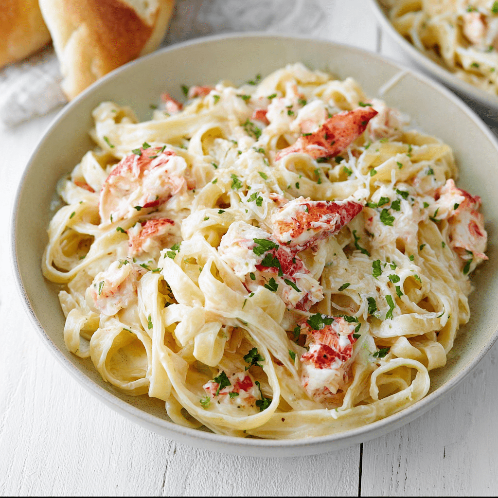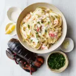 This recipe brings together luxurious lobster and a velvety Alfredo sauce with bold garlic flavor. The sweetness of the lobster perfectly balances the savory cream sauce, while freshly grated Parmesan adds depth and richness. Despite its restaurant-quality taste, the dish comes together quickly and uses simple ingredients. It’s comforting, impressive, and satisfying all at once.