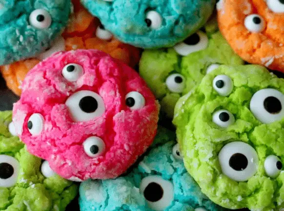 For extra gooeyness, add more chocolate chips or a few mini marshmallows.Use purple or orange food coloring for color variety.Chill the dough slightly if cookies spread too much.Store with a slice of bread in the container to keep cookies soft.Freeze dough balls for up to 3 months and bake from frozen when needed.
