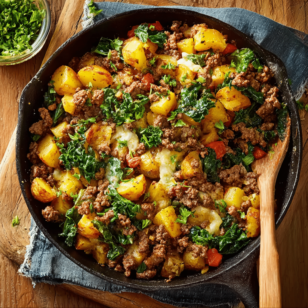 This ground beef & potatoes skillet is a quick and easy one-pan dinner made with seasoned beef, crispy golden potatoes, and simple spices. Perfect for busy weeknights, this hearty skillet meal is budget-friendly, flavorful, and requires minimal cleanup.