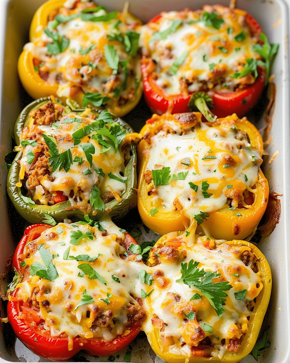 Ground Turkey Stuffed Peppers are a wholesome, colorful dish made with bell peppers filled with seasoned ground turkey, rice, vegetables, and topped with melted cheese. Perfect for a balanced, satisfying meal that’s easy to make and great for meal prep or weeknight dinners.