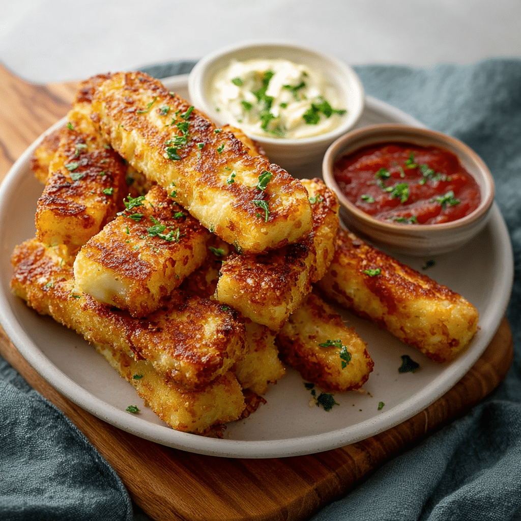 Halloumi cheese has a high melting point, allowing it to become crispy without melting.Avoid overcrowding the pan to ensure the fries cook evenly and become crispy.Serve immediately for the best texture and flavor.If the cheese is very salty, you can briefly rinse or soak it in water before cooking.
