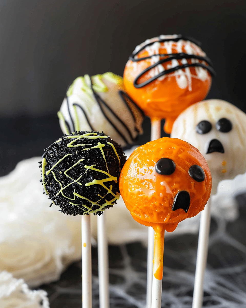 Use flavored donut holes like pumpkin spice for extra seasonal flair.Kids will love decorating their own pops—great for a Halloween party activity.Use mini cupcake liners instead of sticks for easier serving as ‘monster bites.’Avoid chilling the pops to prevent condensation on the candy coating.Prepare up to 24 hours ahead and store at room temperature in a dry place.