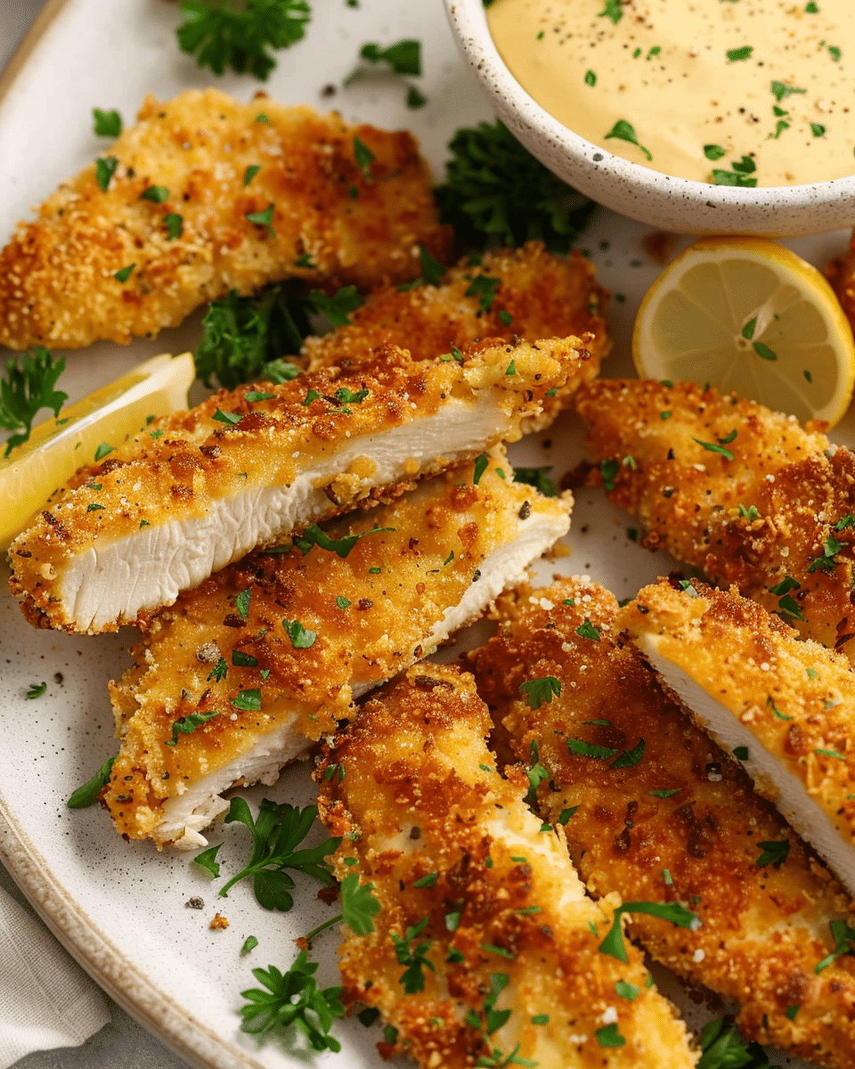 Marinate chicken strips in buttermilk or Greek yogurt for extra tenderness.