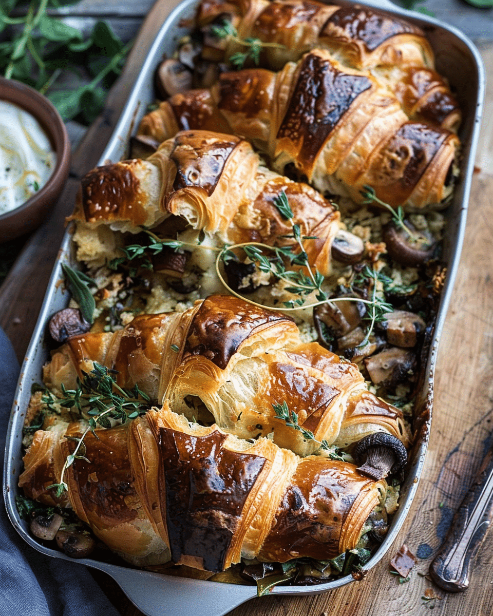 Herby Mushroom Croissant Stuffing is a rich and savory twist on traditional stuffing. Made with buttery croissants, earthy mushrooms, and fresh herbs, it offers a perfect balance of crispy and tender textures in every bite. Ideal for holidays or dinner parties, it’s a flavorful side dish that’s both comforting and elegant.