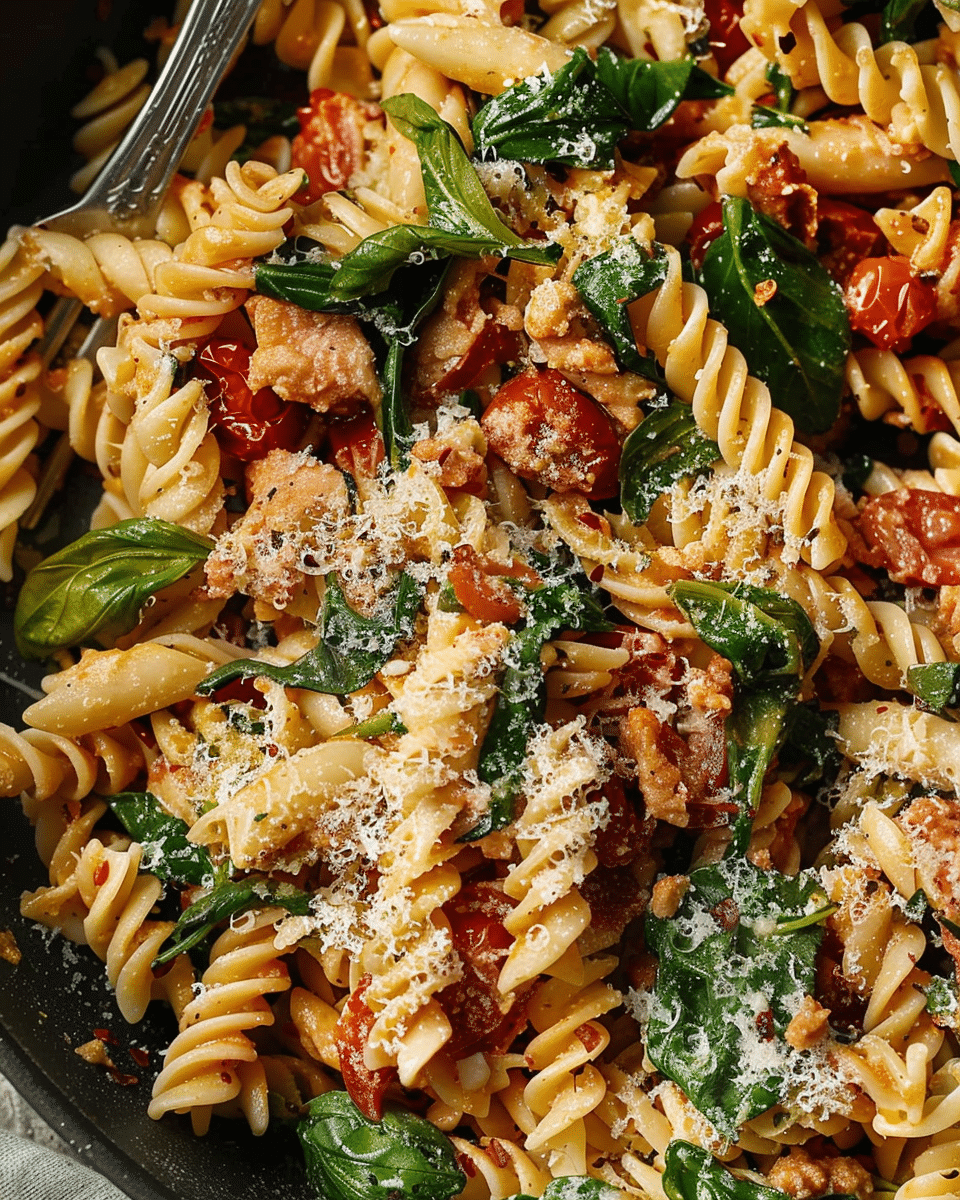 Store leftovers in an airtight container in the refrigerator for up to 4 days. Reheat in the microwave or on the stovetop with a splash of water or broth to keep the sauce creamy. This dish is not ideal for freezing due to the creamy components, but the cooked pasta and protein can be frozen separately for future use.