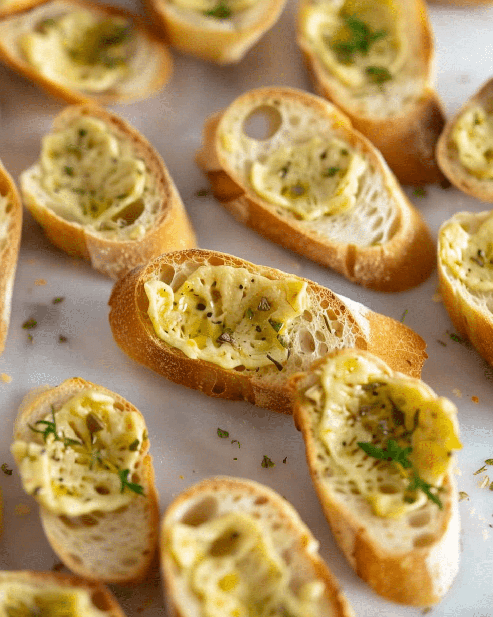 - Cool and serve: Let the crostini cool slightly and serve warm or at room temperature with your favorite toppings.