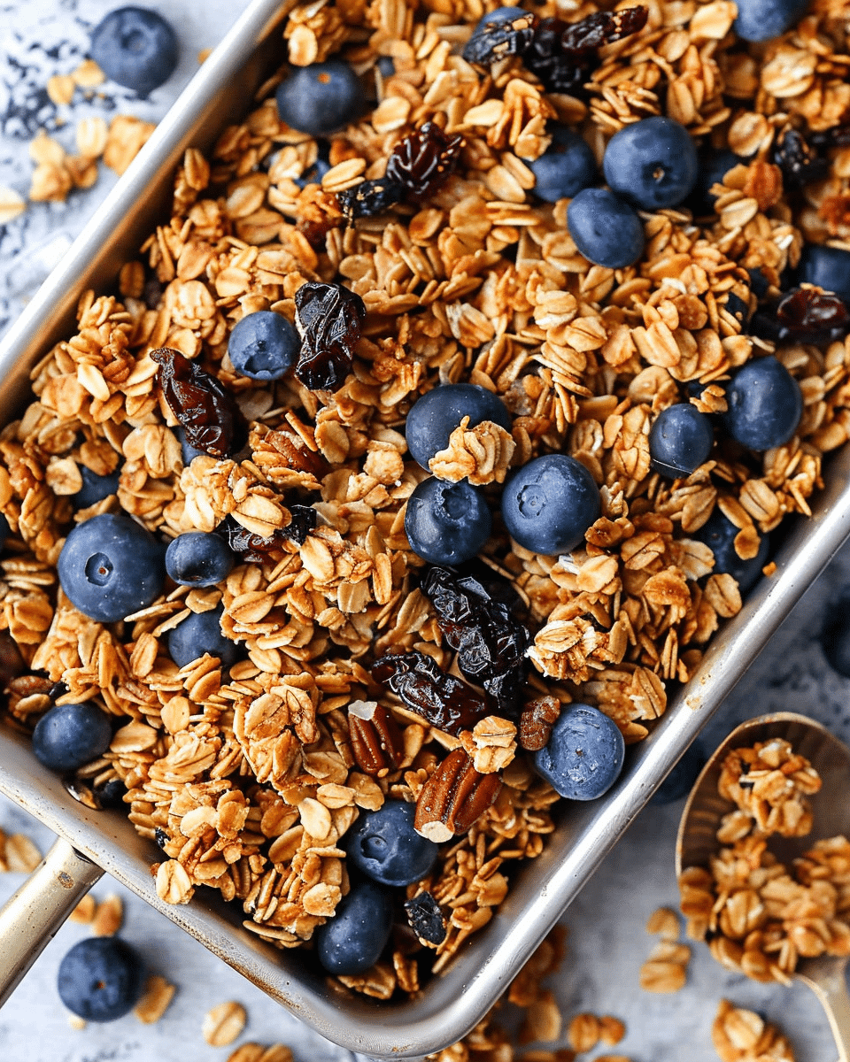 Use certified gluten-free oats for a gluten-free version.Substitute oil with applesauce or mashed banana for a lower-fat option.Let granola cool completely before storing to maintain crunch.Add chocolate chips only after cooling to avoid melting.Customize with your favorite mix-ins like coconut, spices, or dried fruits.
