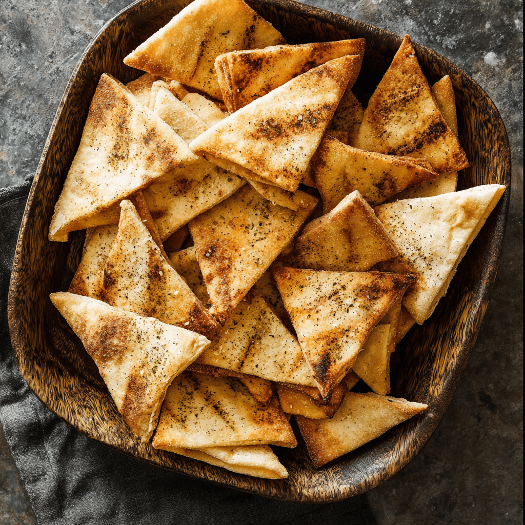 These crispy and golden homemade pita chips are an easy, healthier snack option made from simple ingredients. Baked instead of fried, they pair perfectly with dips like hummus, guacamole, or tzatziki, and are customizable with your favorite seasonings.