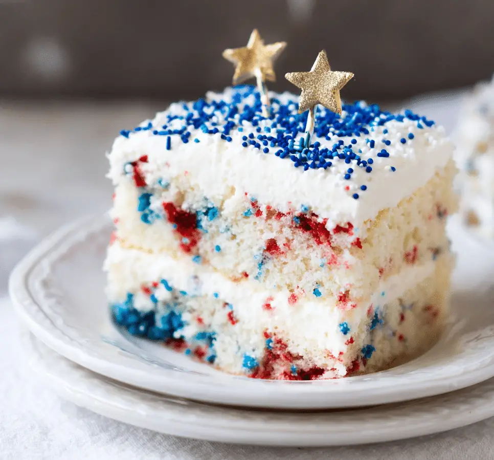 Homemade red, white, and blue funfetti cake is a cheerful, festive dessert that brings color and joy to any celebration. With its soft texture, sweet flavor, and vibrant appearance, it’s a guaranteed hit for gatherings and special moments.