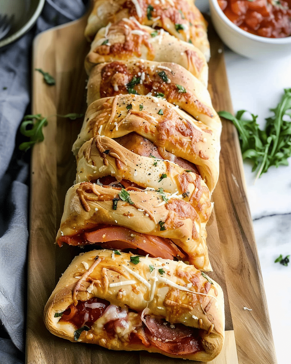 Roll tightly and seal edges well to prevent unrolling during baking.Don’t overload with sauce to avoid sogginess.Precook any raw meats before adding them to the filling.Can be frozen baked or unbaked for up to 2 months.Customize with veggie, spicy, or BBQ-style fillings.
