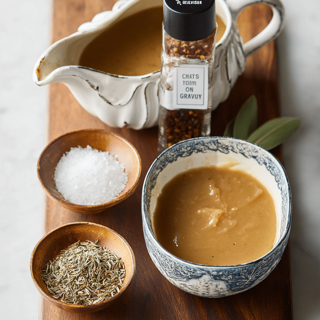 Add a splash of white wine or sherry for additional depth.For richer gravy, stir in a small amount of heavy cream.Chop fresh herbs and add at the end for a bright, aromatic finish.Gravy can be prepared ahead and reheated gently on the stovetop.Adjust thickness by adding more broth if necessary.