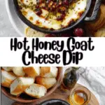 This Hot Honey Goat Cheese Dip is a creamy, baked appetizer topped with sweet and spicy hot honey. Made with tangy goat cheese, smooth cream cheese, and a touch of heat, it’s the perfect easy party dip for entertaining, holidays, or cozy nights in.