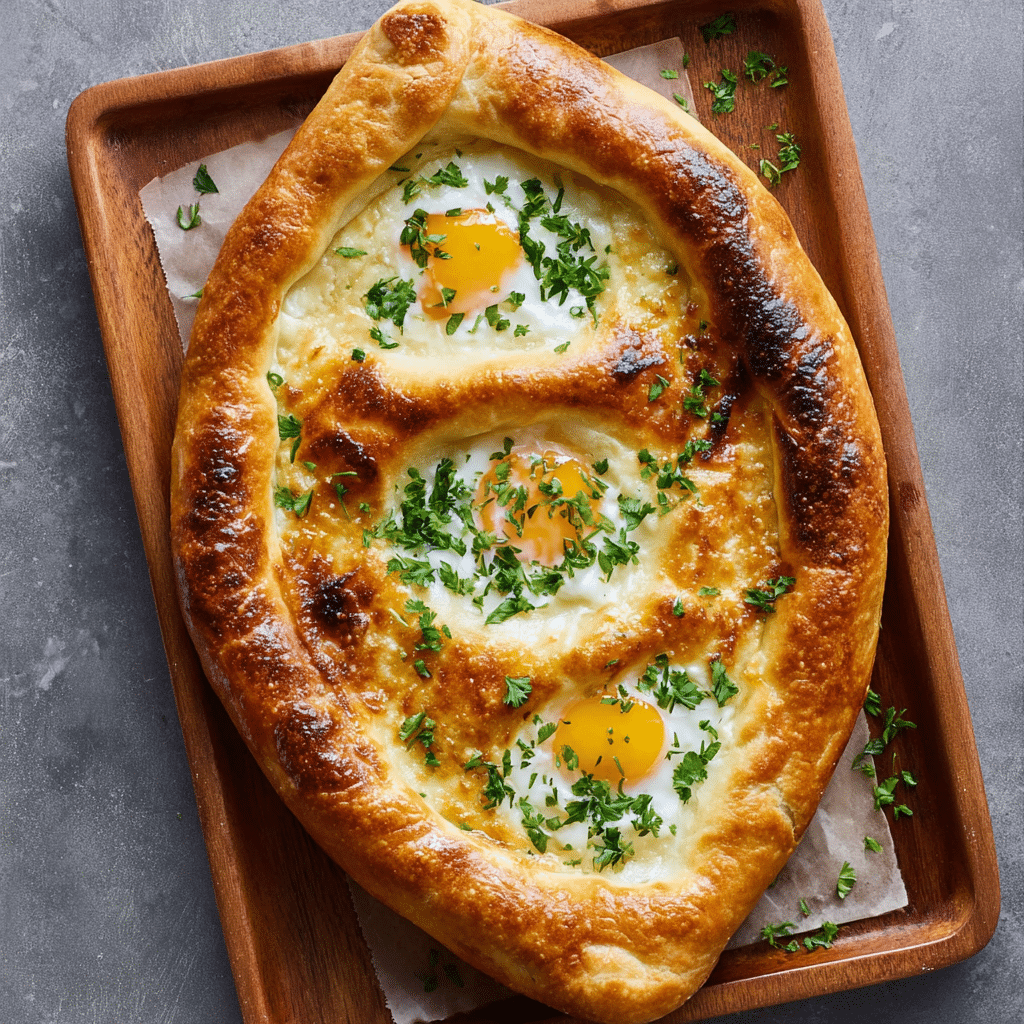 Khachapuri is a traditional Georgian cheese bread featuring soft, pillowy dough filled with gooey melted cheese and topped with a runny egg and butter. This homemade Khachapuri recipe delivers a golden crust, rich cheesy center, and authentic flavor—perfect for sharing as a main dish or centerpiece appetizer.