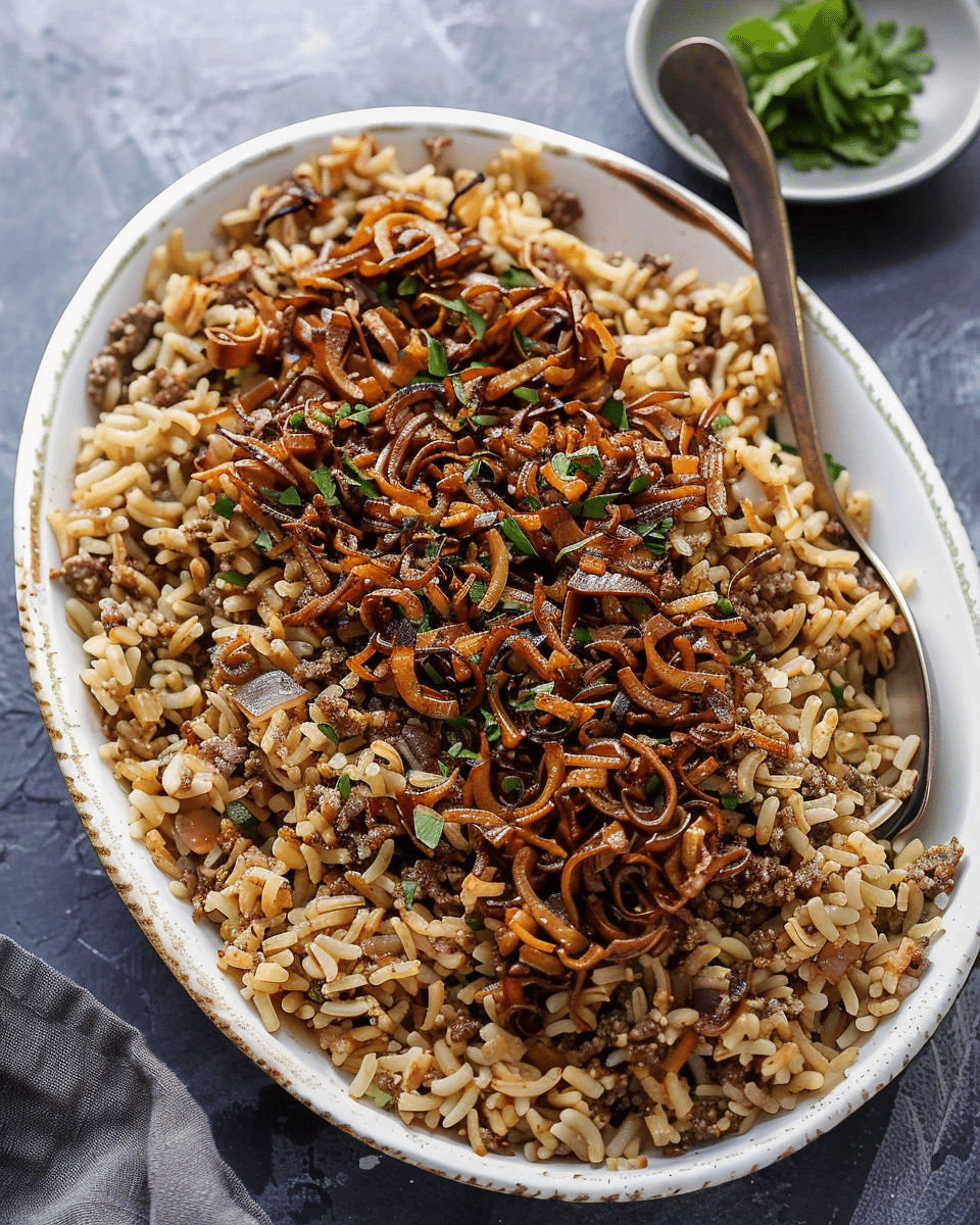 Use rice for a gluten-free version or bulgur for a traditional variation.Caramelize onions slowly for the best flavor and texture.Leftovers taste even better as flavors deepen over time.Optional spices like cinnamon or allspice can be added for variation.Serve with yogurt or fresh salad for a complete meal.