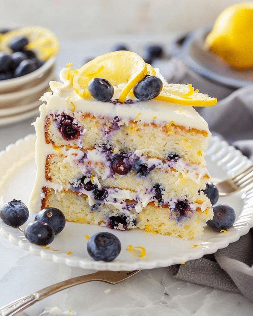 Garnish: Garnish the top of the cake with fresh blueberries and a sprinkle of lemon zest if desired.
