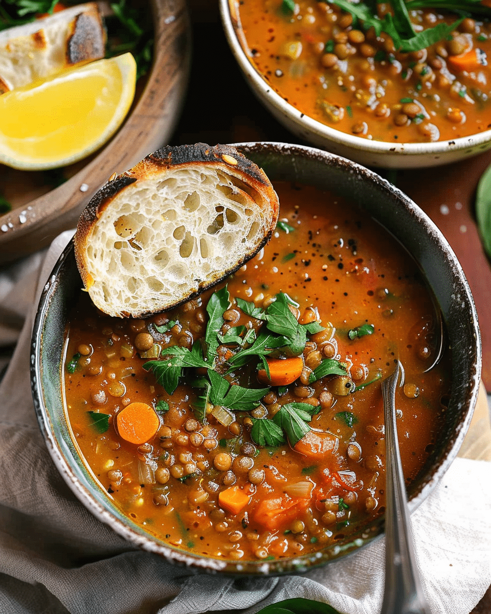 No soaking needed for dry lentils—just rinse before cooking.For a creamier version, blend part of the soup or add a splash of coconut milk.Add greens like spinach or kale during the last few minutes of cooking for extra nutrition.Use red lentils for a quicker-cooking soup with a softer texture.Pairs well with crusty bread, rice, or a side salad.