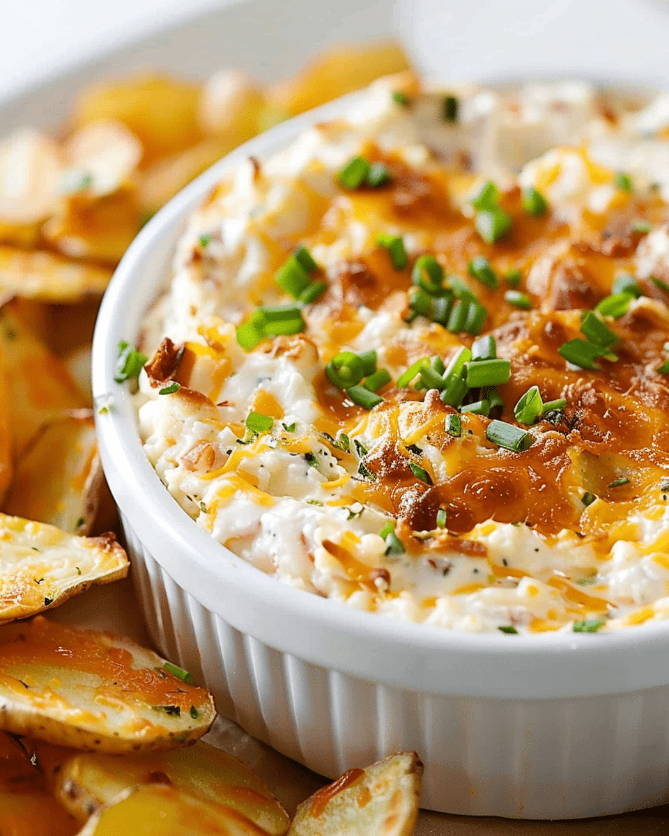 Transfer the dip to a serving bowl and garnish with extra cheese or chives if desired.