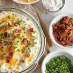 Loaded Baked Potato Dip is a simple yet delicious appetizer that turns everyone’s favorite comfort food into a shareable party snack. It’s creamy, cheesy, and full of savory flavor, making it the ultimate dip for nearly any occasion. Quick to whip up and easy to customize, this is a must-have recipe for your appetizer rotation.