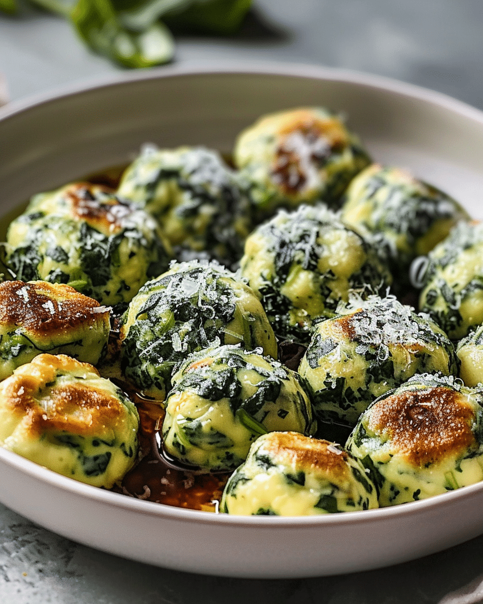 Malfatti Italian Spinach Ricotta Dumplings are soft, pillowy dumplings made with fresh spinach, ricotta cheese, and a touch of flour. These delicate, flavorful dumplings are often served with a simple butter and sage sauce, making them the perfect Italian comfort food. Easy to prepare and full of rich flavor, Malfatti is ideal for a cozy dinner or special gatherings. Experience the true taste of Italy with this classic recipe!