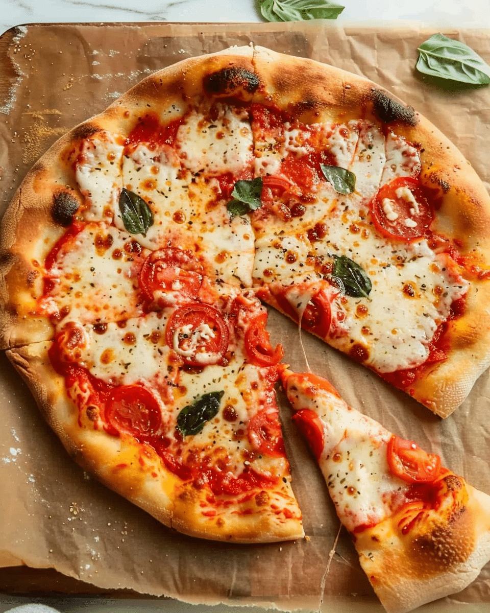 Margherita Pizza is the perfect balance of crisp, chewy dough, tangy tomatoes, and melty mozzarella—all elevated by a touch of fresh basil. It’s quick to prepare with store-bought or homemade dough, customizable to your preferred crust thickness, and bakes in just minutes. Whether you’re making it in a conventional oven or on a pizza stone, this pizza captures the soul of Italian cooking: fresh, simple, and delicious.