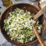 Maroulosalata is a classic Greek lettuce salad made with finely shredded romaine, scallions, fresh dill, and a simple olive oil and vinegar dressing. It’s crisp, refreshing, and perfect as a light side dish.