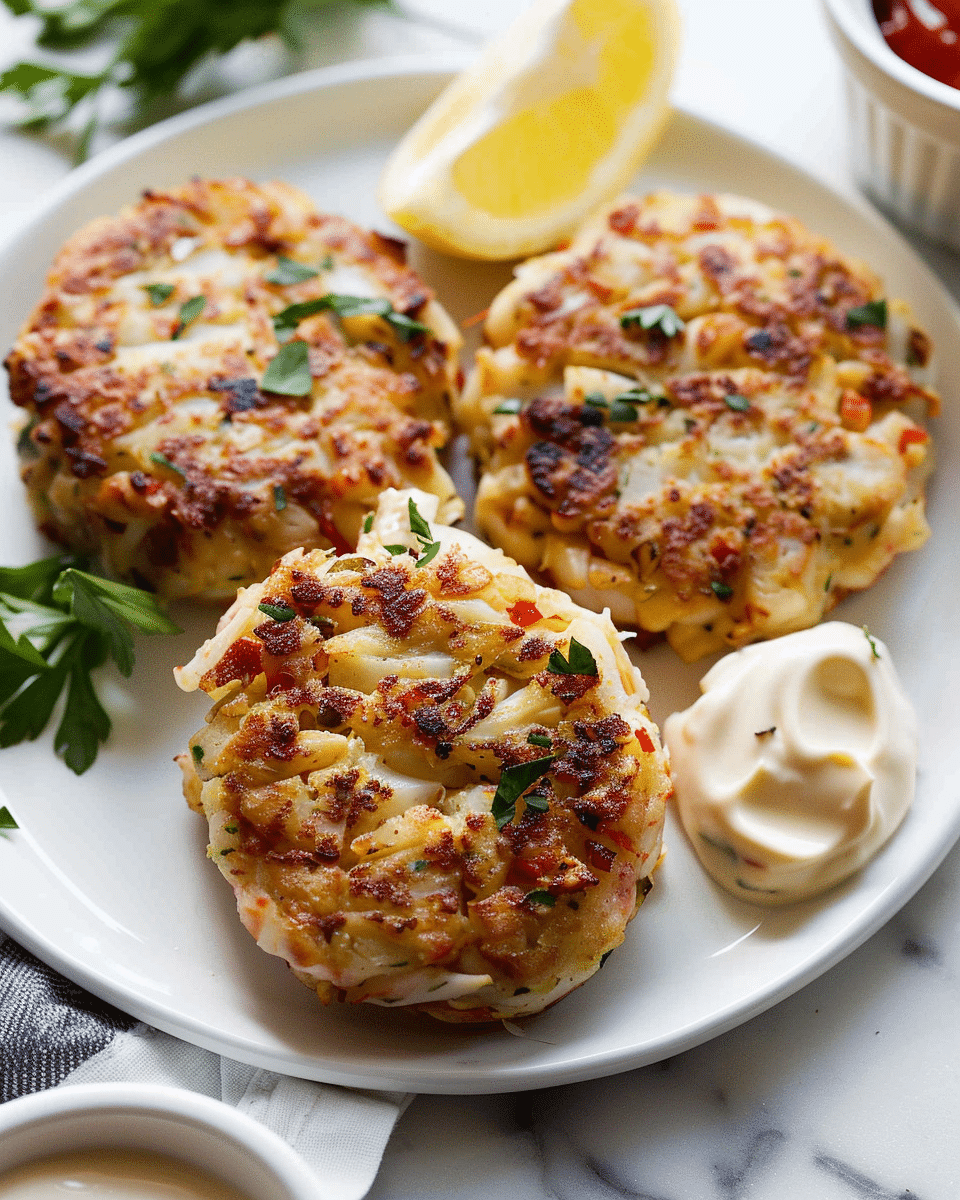 Baked Crab Cakes: Instead of frying, bake the crab cakes at 375°F for 15–20 minutes, flipping halfway through for even browning.