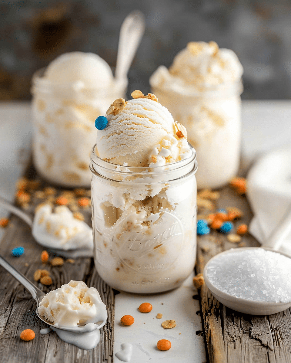 - Optional mix-ins: chocolate chips, crushed cookies, fruit, caramel, or sprinkles