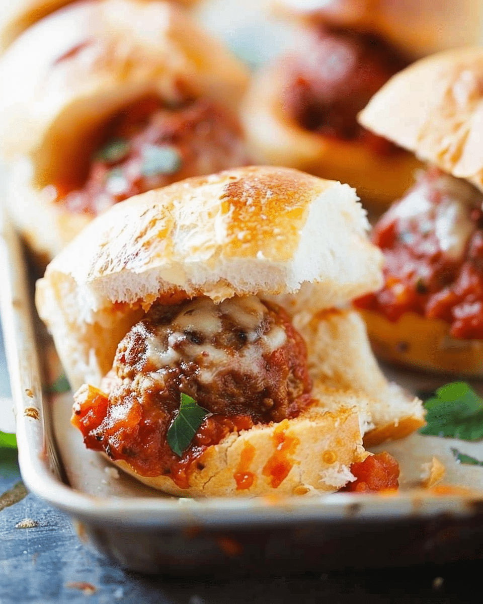 Meatball sliders are savory mini sandwiches made with tender meatballs, marinara sauce, melted cheese, and soft slider buns—baked until golden and gooey. Perfect as an appetizer or easy dinner.