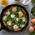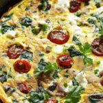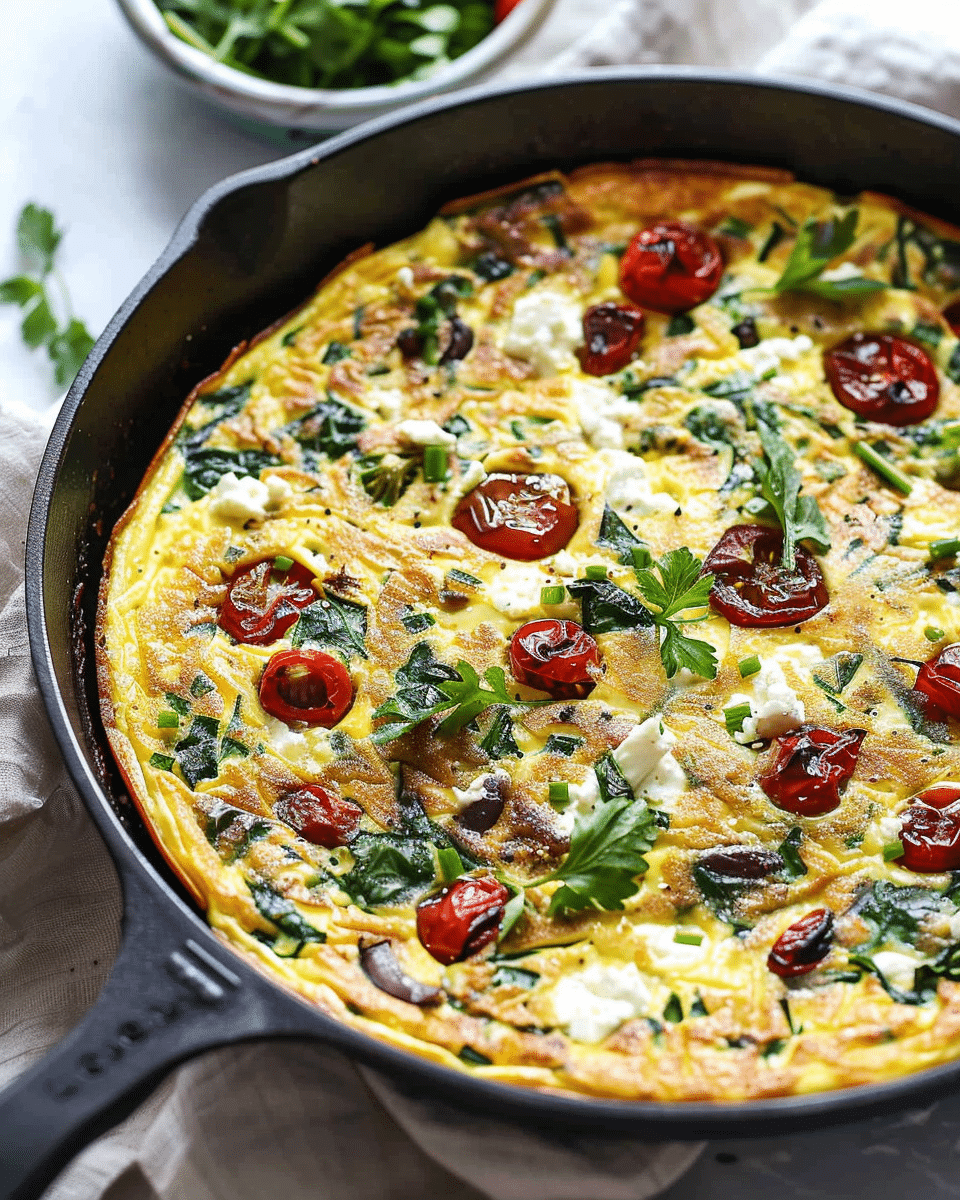 The Mediterranean Frittata is a flavorful, protein-rich egg dish featuring vegetables like spinach, cherry tomatoes, olives, and feta cheese. It’s inspired by Mediterranean cuisine and makes for a nutritious breakfast, brunch, or light dinner.