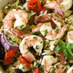 Mediterranean Shrimp Orzo Salad is a refreshing and flavorful dish combining tender shrimp, orzo pasta, fresh vegetables, olives, and feta cheese tossed in a zesty lemon-herb dressing. Perfect served warm or chilled, it’s ideal for quick dinners, meal prep, or summer gatherings.