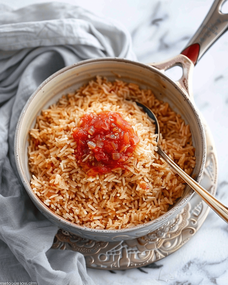 Toasting the rice is key to achieving fluffy, separate grains.Add vegetables like corn or peas in the last few minutes for added nutrition and color.Use tomato paste if you don’t have sauce—just reduce the quantity and add extra broth.Use brown rice for a whole grain option, but extend simmer time and add more broth as needed.This dish is naturally gluten-free when made with gluten-free broth.