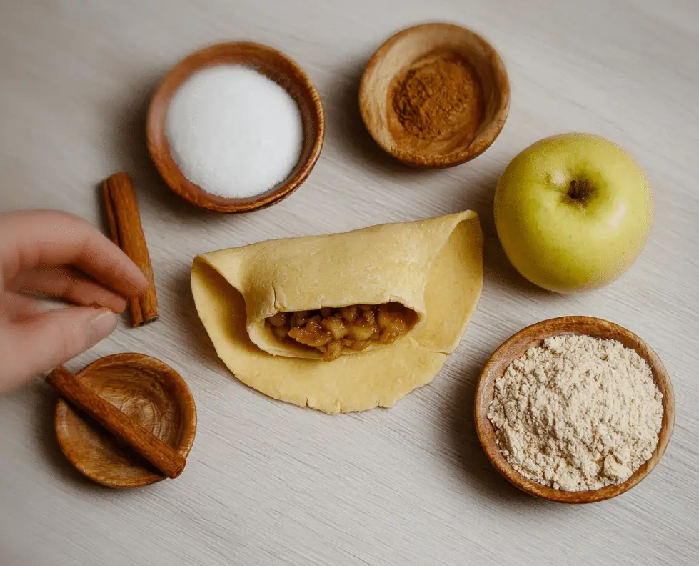 Always cool the apple filling completely before using to avoid soggy dough.Use firm apples with a sweet-tart balance for best flavor.If the dough feels sticky, add a little more flour gradually.Add walnuts, raisins, or spices like cloves or nutmeg for variation.Seal edges well to prevent filling leakage during baking.Store in an airtight container for up to 3 days (room temperature) or 5 days refrigerated.Reheat briefly in the oven for best texture.