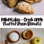 Milopitakia are traditional Greek apple stuffed vegan biscuits made with a soft, tender dairy-free dough and a warmly spiced apple filling. These easy homemade vegan pastries are fragrant with cinnamon and citrus, perfect for tea time, snacking, or festive gatherings.