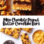 No-bake cornflake bars combining the sweet-salty richness of peanut butter, chocolate, and miso with crunchy cereal. A unique, kid-friendly treat perfect for snacks or dessert.