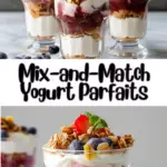 Mix-and-match yogurt parfaits are colorful, creamy, and easy to prepare. Perfect for breakfast, snacks, or light desserts, they combine layers of yogurt, fruit, granola, and toppings for a nutritious and customizable treat.