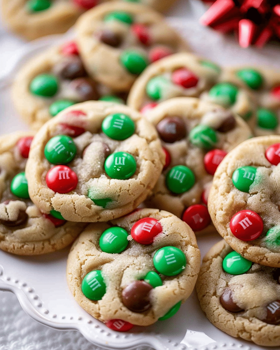 M&M Christmas Cookies are soft, chewy, and buttery cookies filled with festive red and green M&M’s—perfect for holiday parties, cookie exchanges, or cozy winter nights.