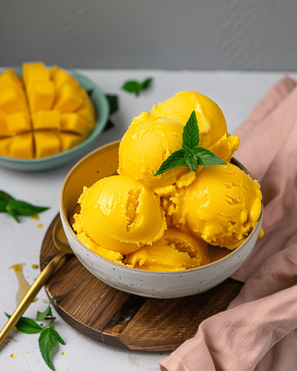 Mint Mango Sorbet: Blend in fresh mint leaves for a refreshing, herbal flavor to complement the mango.