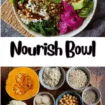 A nourish bowl is a balanced meal made with grains, vegetables, protein, and healthy fats.