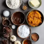 For the pumpkin muffin batter: all-purpose flour baking soda baking powder salt ground cinnamon ground nutmeg ground ginger granulated sugar brown sugar pumpkin puree vegetable oil eggs vanilla extract