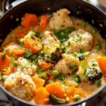 This One Pot Creamy Vegetable Dumpling Soup is a hearty, comforting meal packed with fresh vegetables and fluffy homemade dumplings in a creamy broth. Perfect for cozy nights and easy clean-up, it’s vegetarian, simple to prepare, and customizable to suit various diets.