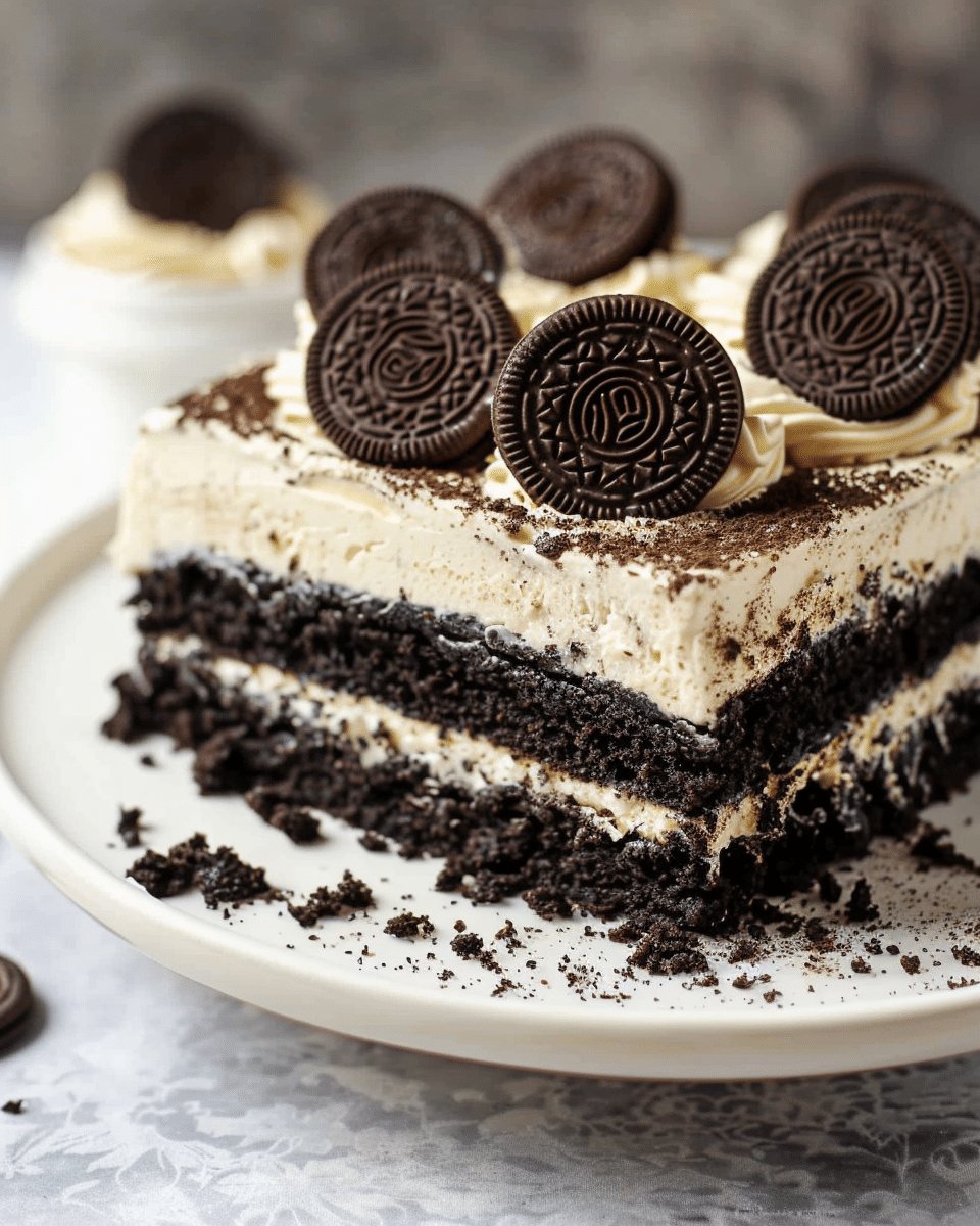 Oreo Dirt Cake is a no-bake dessert featuring layers of crushed Oreo cookies, creamy pudding, and whipped topping. This nostalgic and playful treat is rich, chocolatey, and perfect for any gathering or celebration.
