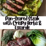 This Pan-Seared Steak with Crispy Herbs & Escarole recipe creates a perfectly caramelized crust with juicy, tender meat, complemented by crispy rosemary and thyme and the slightly bitter freshness of escarole. A quick and elegant steakhouse-quality meal you can easily make at home in under 30 minutes.