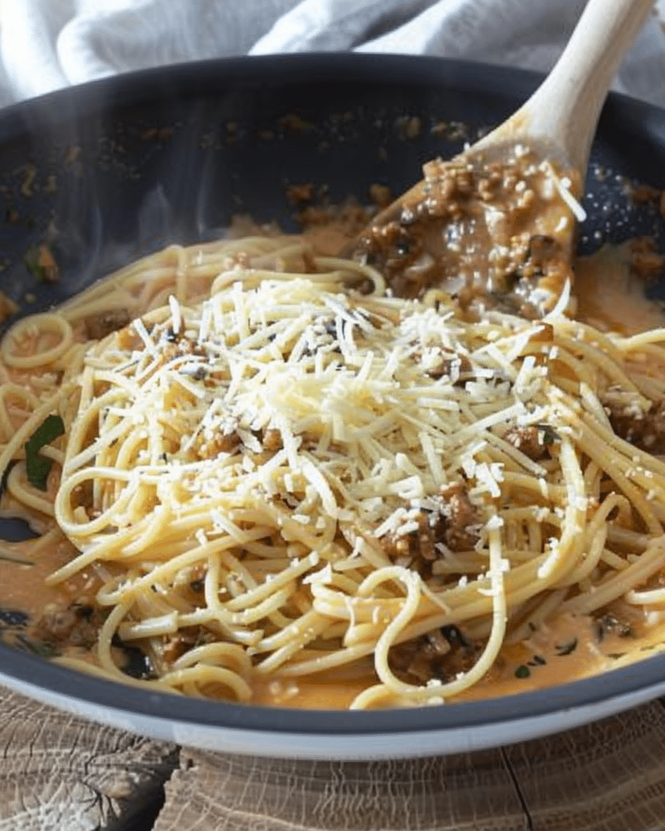 Store: Cover leftover pasta in an airtight container and refrigerate for up to 2 days. Re‑heat gently.