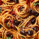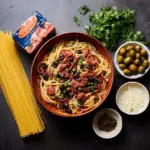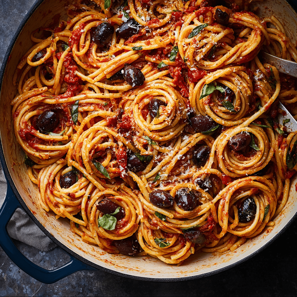 Pasta Puttanesca is a bold and savory Italian pasta dish made with tomatoes, olives, capers, anchovies, and garlic. This easy Pasta Puttanesca recipe delivers vibrant Mediterranean flavors in under 30 minutes, making it the perfect quick weeknight dinner using simple pantry ingredients.