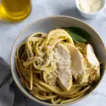 Pesto pasta with chicken is a quick, flavorful dish featuring tender pasta, juicy chicken, and fresh pesto sauce. It’s an easy weeknight dinner or meal prep option that’s satisfying and full of vibrant flavor.