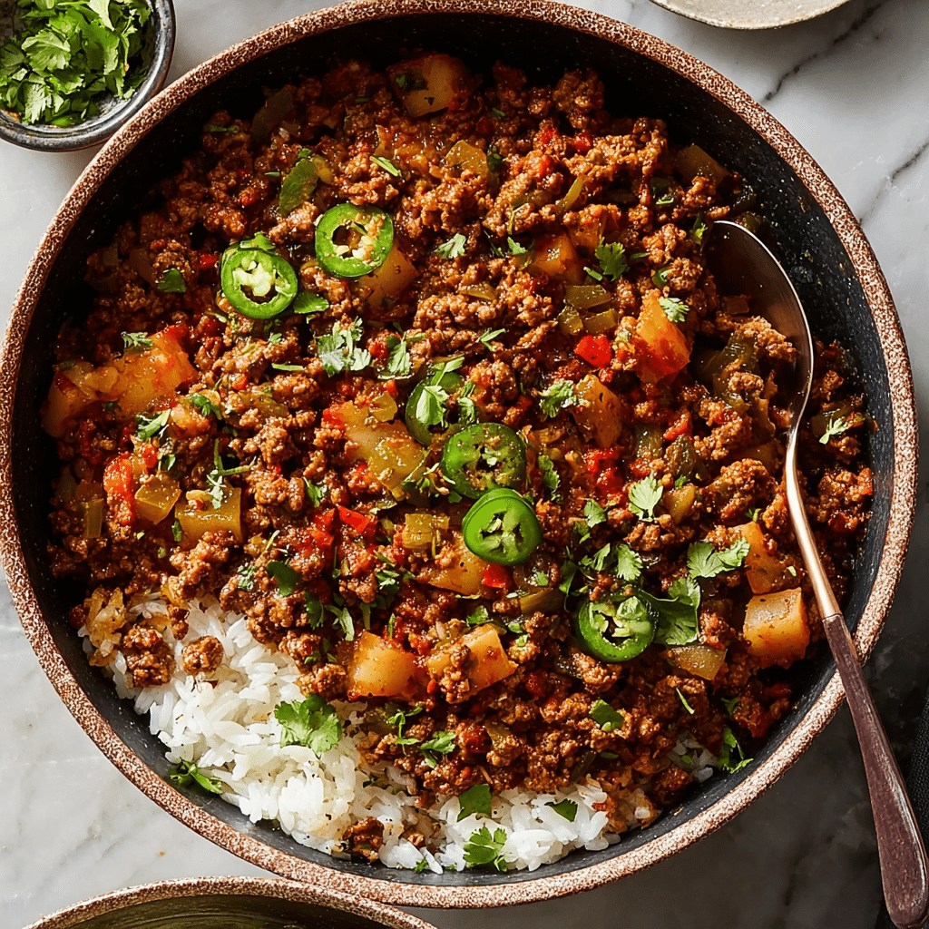 This picadillo recipe is a classic Latin comfort dish made with seasoned ground beef, tender potatoes, tomatoes, and a blend of savory, sweet, and briny flavors. Easy to prepare and incredibly versatile, this homemade picadillo is perfect for serving over rice, in tacos, or as a filling for your favorite dishes.