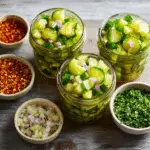 Pat pickles lightly dry if overly juicy to avoid excess liquid.Remove jalapeño seeds for milder heat.Letting it rest enhances flavor.Best served chilled or at room temperature.
