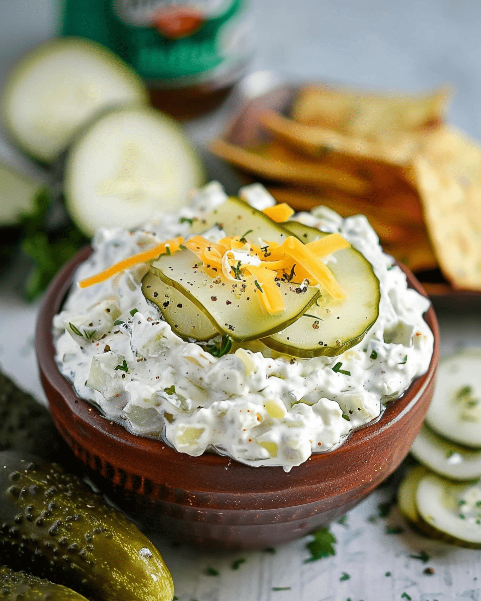 This dip is simple to prepare and bursting with bold flavor. It’s an excellent choice for parties, game days, or casual snacking. The tangy crunch of pickles pairs beautifully with the creamy base, making it both refreshing and indulgent. With just a handful of ingredients, you can whip it up in minutes and serve it chilled for maximum flavor.
