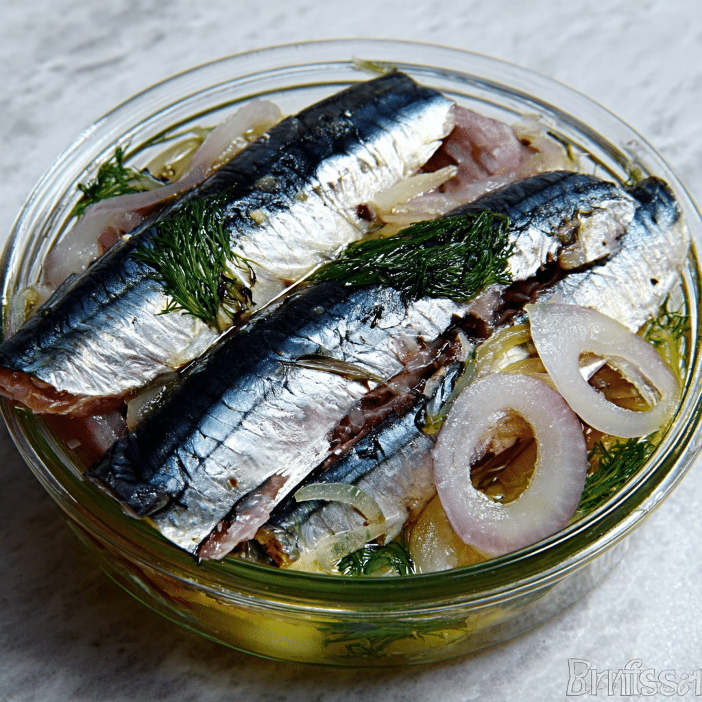 • 2 pounds fresh mackerel or herring fillets, cleaned and deboned • 1 cup white vinegar • 1 cup water • 1/4 cup sugar • 1 tablespoon salt • 1 medium red onion, thinly sliced • 2 bay leaves • 1 teaspoon whole black peppercorns • 1 teaspoon mustard seeds • 1/2 teaspoon allspice berries • Optional: fresh dill sprigs