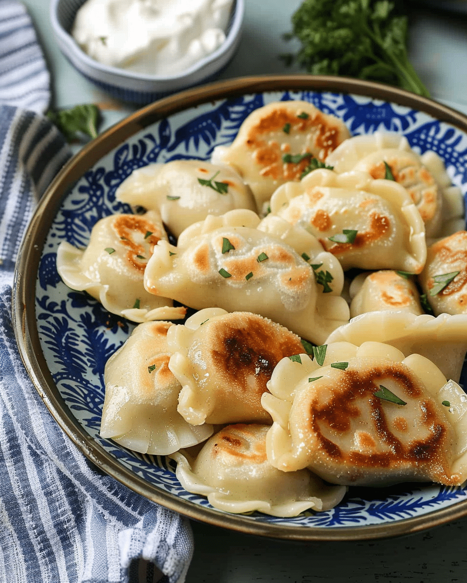 Serve: Serve the pierogi with sour cream, additional sautéed onions, or a sprinkle of fresh herbs for extra flavor. Enjoy!